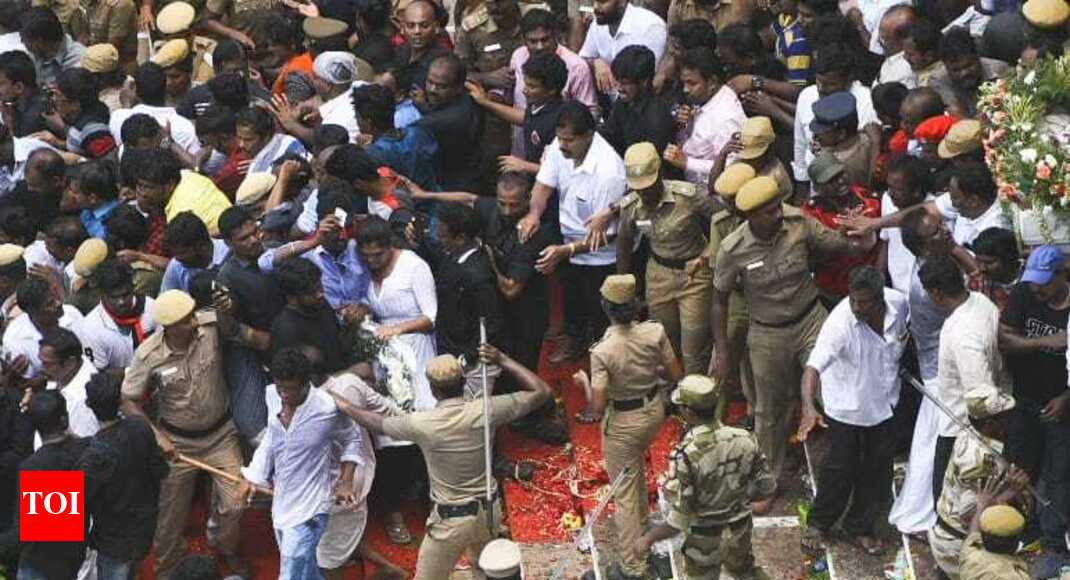 The stampede happened around 11.15am when police were letting people enter Rajaji Hall premises in batches.