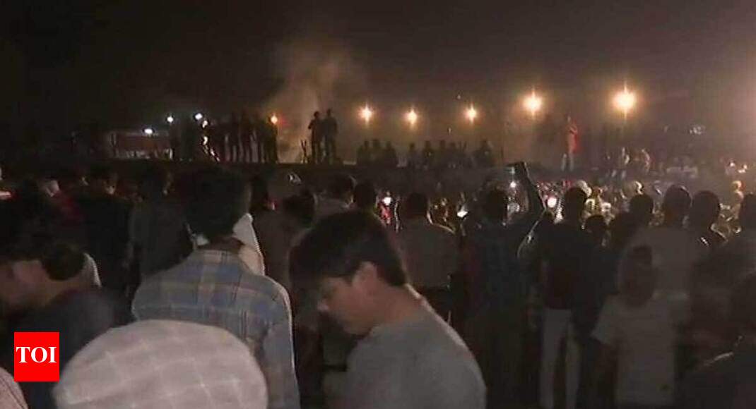 At least 300 people were at the spot watching 'Ravan dahan', sources said. On the occasion of Dussehra, effigies of Ravana are burnt across the country where people participate enthusiastically in scores.